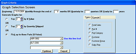 - Analyze sales by customer, customer group, part, and part group